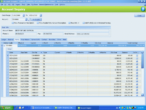 In AutoCount Accounting, you can access to up-to-date business information in one-screen. In Account Inquiry, you can access to Aging, Contact, Price History and other information of your debtors by click on the information tab. You can drill down to source documents for detailed information.