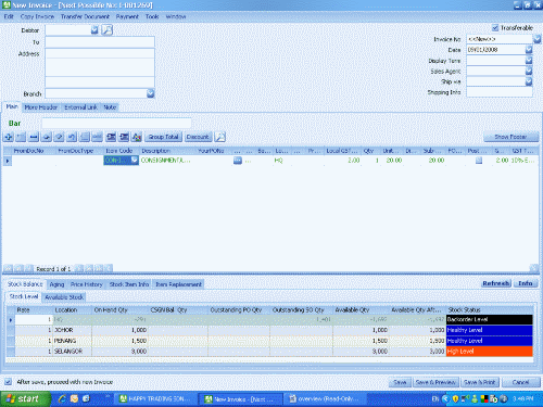 You can always click on Instant Info bar when creating new transaction document. It provides you information on Stock Balance, Debtor / Creditor Aging, Price History, Stock Item Information and Item Replacement. Hence, you would be better informed before agreeing a new deal.