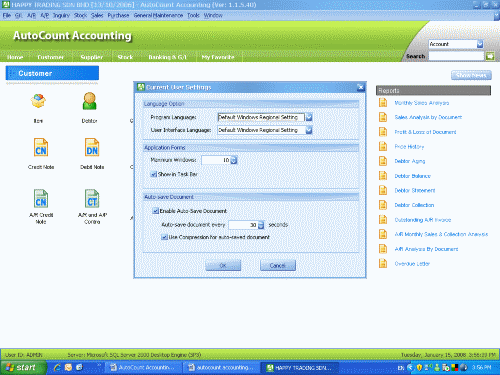 AutoCount Accounting sits on top of Microsoft SQL Server which gives you reliable database. Most of the AutoCount Accounting function has been optimized for fastest speed. Using ADO.NET, AutoCount Accounting provides greater performance and more scalable than traditional client server application.